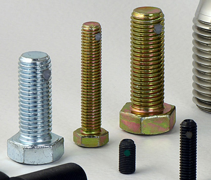 The pellet is compressed into a hole drilled in the threaded region of the fastener. Its size and position are standard but can be modified to meet customer requirements. This system forms a wedge, creating metal to metal friction when the pellet is deformed. As the pellet strives to regain its original shape, this causes firm locking.